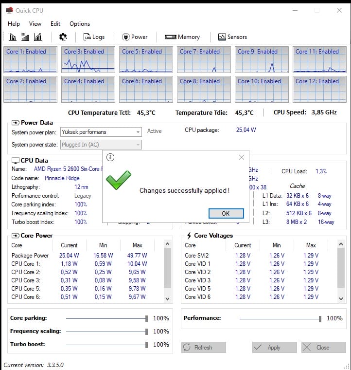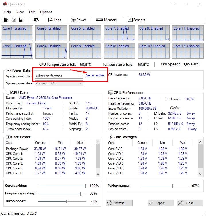 Program hakkında çok kısa yazılı olarak belirttikten sonra detaylı bir şekilde görseller ile de belirteceğim. QuickCPU sizin kullandığınız ve yukarıda da bahsettiğim işlemcinizin çekirdeklerini hem sürekli aktif olarak hem de tam performansta çalışmasına yarıyor.