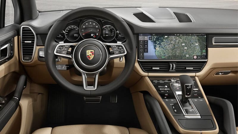 İç kısma geçtiğimizde hem lüks hemde sportif görüntüden ayrılmayan Cayenne vitesin üstünde dev bir ekranla birlikte geliyor. 12,3 inçlik Full HD dokunmatik bu ekran navigasyon trafik bilgilerini başarılı bir şekilde veriyor. Eski versiyonda ekranın solunda ve sağında bulunan hava kanalları yeni Cayenne'de ekranın altına yerleştirilmiş.