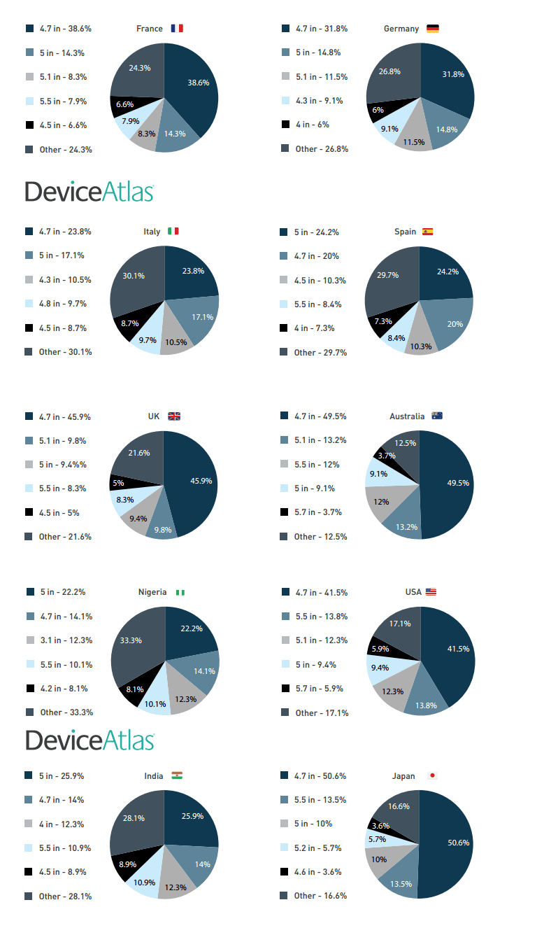 Bir analiz şirketinin yaptığı araştırmaya göre kullanıcılar telefonların daha çok ekran boyutlarına önem gösteriyor ve bunu bir sınıflandırma yaparak hangi ülkede hangi boyutlar kullanılıyor diye yaptıkları araştırmada sonuçları dikkat çekici olmuş.