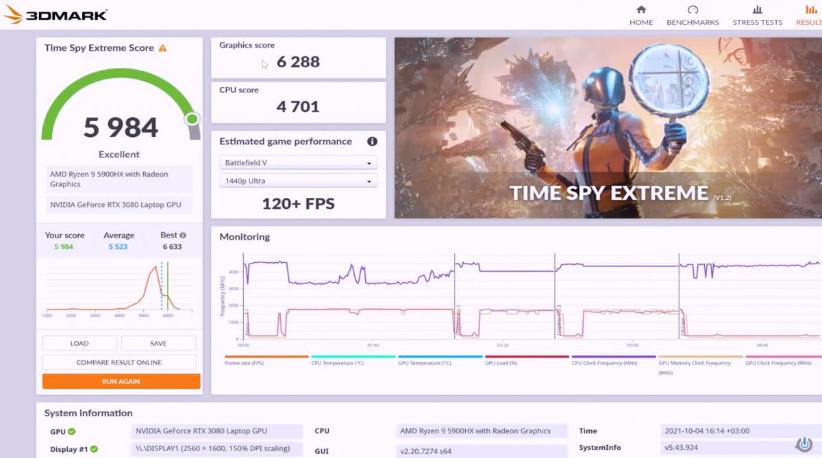 4K testinde 12 dakikalık bir test sürecinden sonra cihaz, 5.984 genel puan elde etmeyi başardı. Grafik kısmında 6.288 puan alınırken, işlemci kısmında ise 4.701 puan almayı başardık.