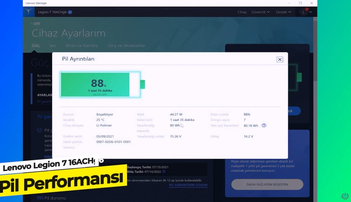 Legion 7 16ACHg6 Pil Konusunda Nasıl?
