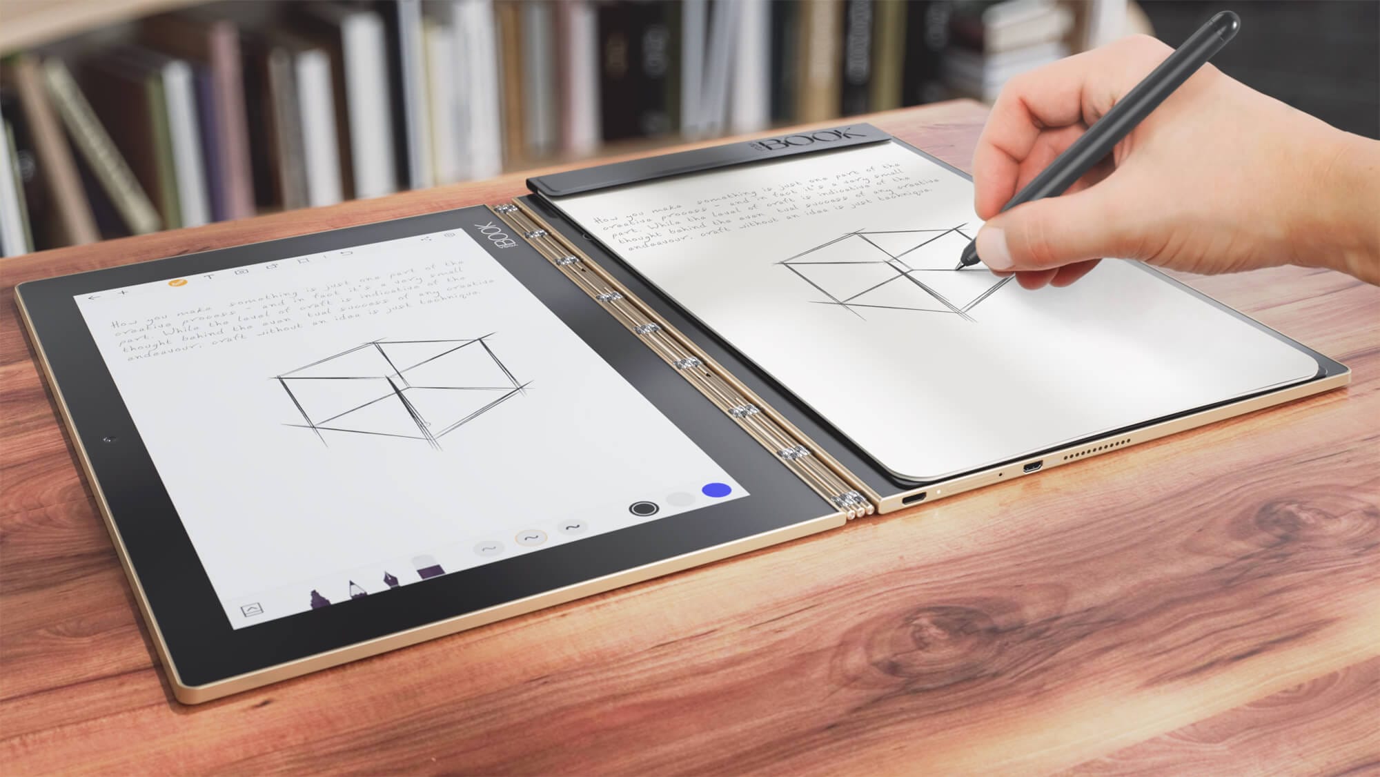 Dünyanın en iyi bilgisayar üreticilerinden olan Lenovo yeni tableti Yoga Book'u satışa sundu. Şık tasarımlarıyla her zaman ön planda olan Lenovo bu sefer de tasarımdan taviz vermiyor. Gerçek mürekkepli kalemi ile yeni Yoga Book sadece 690 gr ağırlığa ve 4,05 mm kalınlığa sahip. Daha teknik detaylardan bahsetmeden önce ürün prekende satış mağazalarında ve Türkiye'nin büyük satış mağazaları olan TeknoSa, Vatan Bilgisayar ve Media Markt'te satışta olduğunu belirtelim.