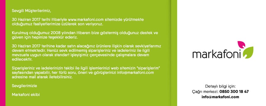 Açık konuşayım: Markafoni web sitesinin tasarımını ve kampanyalarını beğeniyordum. Kapanmasına da üzüldüğümü belirtmek isterim. Daha fazla konuyu uzatmadan Markafoni tarafından yapılan resmi açıklamayı sizlerle paylaşmak isterim: