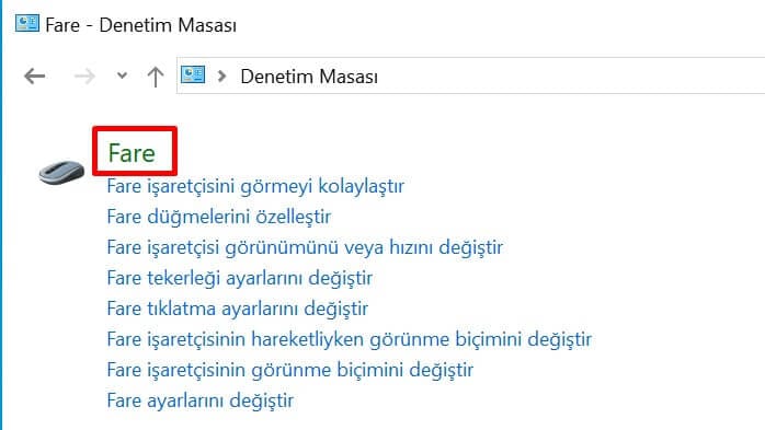 "Fare" seçeneğine tıklıyoruz. Karşımıza açılan pencereden "İşaretçi Seçeneklerini" seçiyoruz.