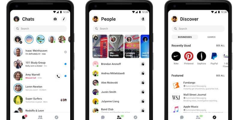 Facebook'un mesajlaşma platformu olan Messenger uygulaması yeni güncelleme ile birlikte yeni tasarıma kavuştu. Güncellemeyle gelen yeni tasarım eskiye kıyasla daha basit ve daha az karmaşık hale getirilmiş.