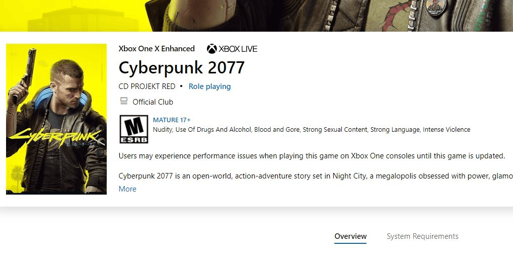 Cyberpunk 2077 için büyük bir talihsizliğin ardından Microsoft, mağaza sayfalarına bir performans uyarısı ekledi. Microsoft Store üzerinden oyunu satın almak isteyen oyuncular şu metin ile uyarılıyor: "Kullanıcılar, bu oyun güncellenene kadar bu oyunu Xbox One konsollarında oynarken performans sorunları yaşayabilir."