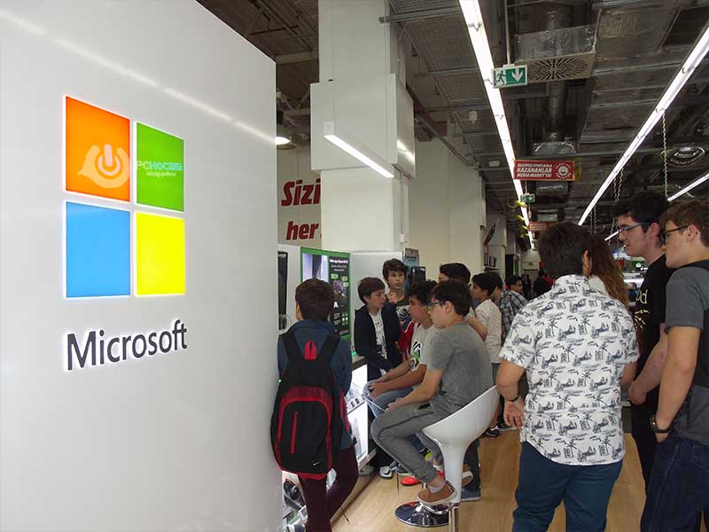 Microsoft,geçtiğimiz günlerde Türkiye'de ilk mağazasını Shop-In-Shop konseptiyle Ankara'da bulunan bir teknomarkette açmıştı.Gayet hoş bir konseptle açılan mağaza.XBOX Ürünleri,Microsoft'un daha önce Türkiye'de bulamadığımız bazı çevre birimi ürünleri,anlaşmalı bilgisayar üreticilerinin bilgisayarları ve bu ürünleri deneyimleyebileceğimiz gayet güzel bir ortam oluşmuş.Ayrıca bu mağazada bulunan Microsoft görevlileri oldukça ilgili oluyor.