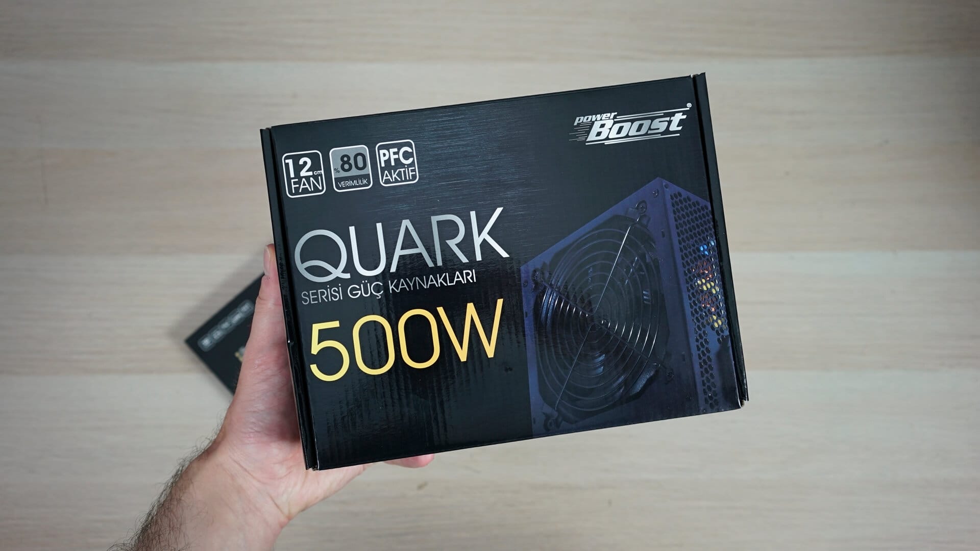 Sistemimize güç veren bir diğer parçamız ise PSU. Bu noktada PowerBoost'un QUARK model güç kaynağını kullandığımız PSU, 500W gücünde çalışıyor. 120mm soğutucu fan ile gelen PSU, %80 verimlilik sunuyor.
