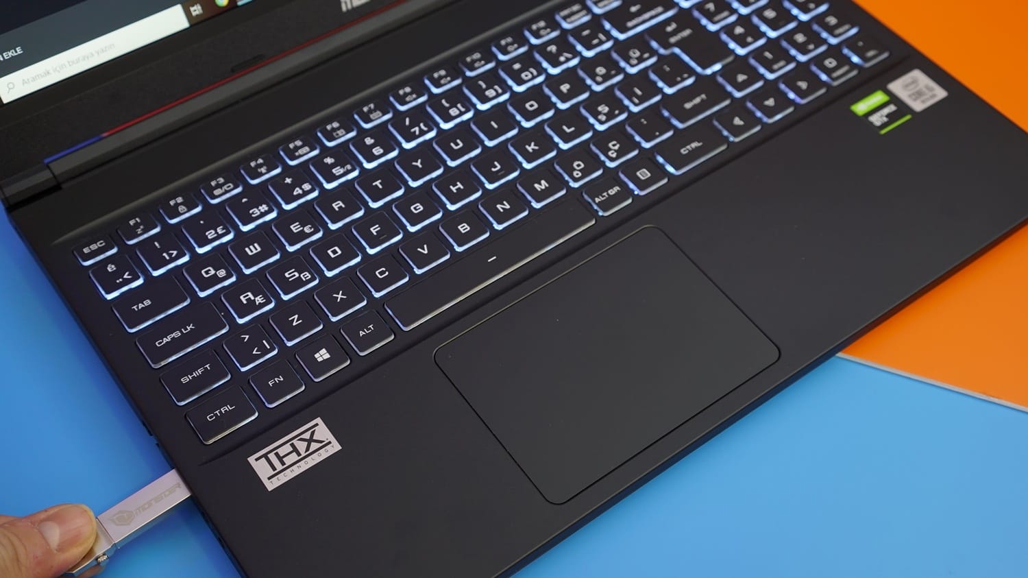 Cihazın kapağını kaldırdığımızda, RGB aydınlama desteği sunan low profil klavye görüyoruz. Klavyenin detaylarına teknik kısımda değineceğiz. Öte yandan klavyenin hemen altında çift tıka sahip geniş bir touchpad alanı görüyoruz. Bunun dışında ön alanda herhangi bir farklılık bulunmuyor.