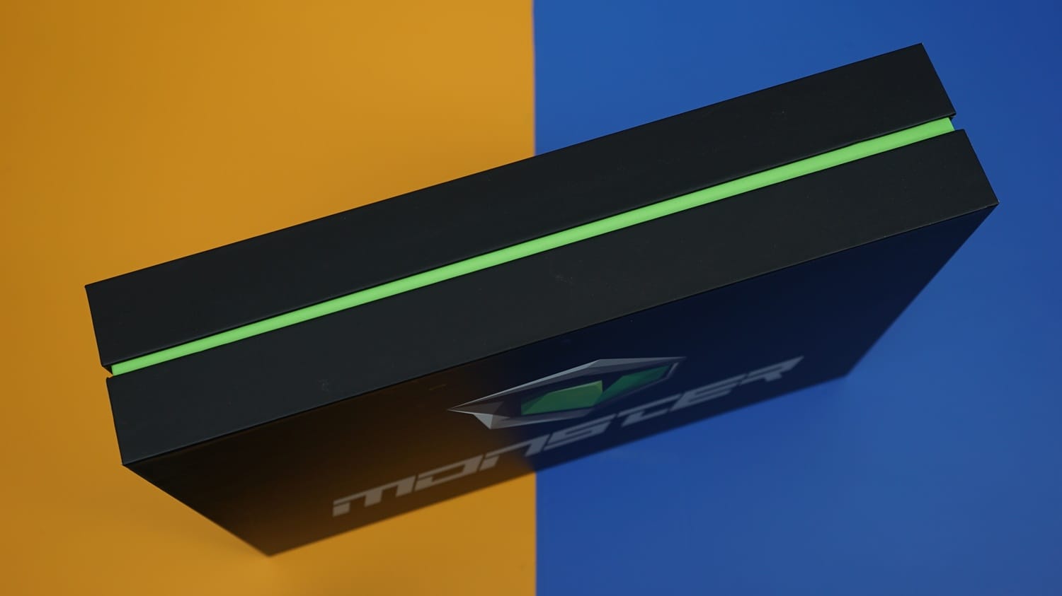 Monster Abra A5 v15.7, alıştığımız sade ancak dikkat çekici kutusu ile bizleri karşılıyor. Oldukça büyük olan bu kutu, kapakların birleşim yerlerinde dikkat çeken bir yeşil renk barındırıyor. Kutunun üzerinde ise Monster logosu ve markası mevcut.