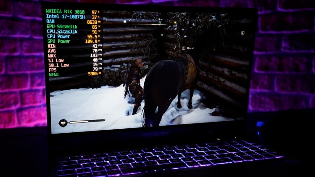 Dizüstü bilgisayarımızın oyun testlerine baktığımızda, RTX kapalı konumda iken birçok oyunda 100 FPS'in üzeri değerleri görüyoruz. RTX açık konumda iken ise oyunlardaki FPS değerlerinin 70 FPS civarlarında dolaştığını söyleyebiliriz.