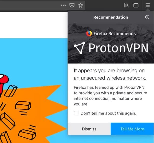 Mozilla, küçük bir grup Firefox kullanıcısının ZDNet tarafından fark edilen ProtonVPN aboneliğini satın alacağı bir reklam göstereceği bir denemeyi yayınlayacağını duyurdu . Bir blog yayınında , Mozilla şeffaflık ve veri saklama politikaları gibi faktörlerden dolayı ortaklık için ProtonVPN'i seçtiğini açıkladı.