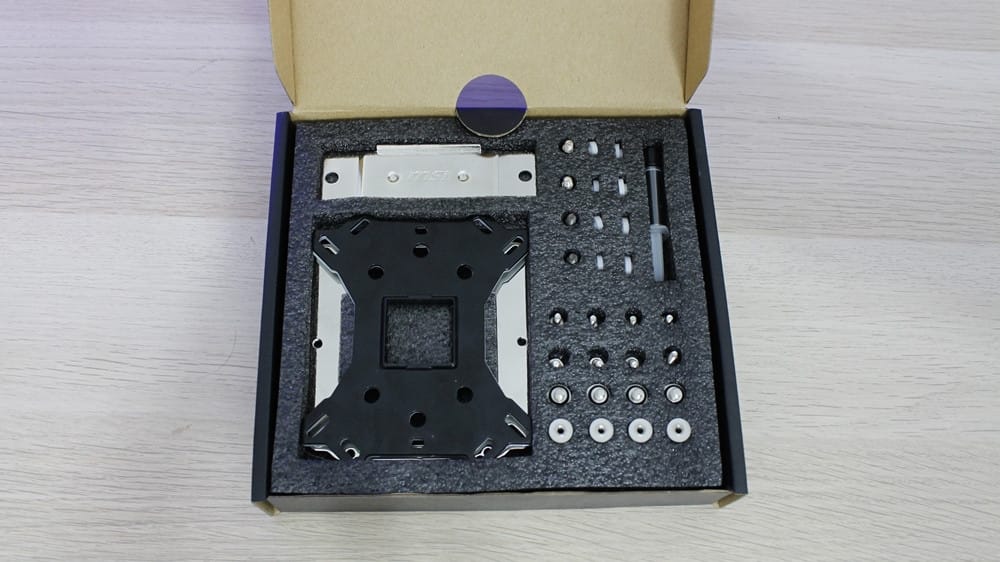 Kutuyu açtığımızda ise ilk olarak bağlantı aparatlarının bulunduğu ufak bir kutu çıkıyor. Hemen altında ise Core Frozr XL'ı görüyoruz. Bağlantı aparatlarını içeren kutu oldukça güzel ve düzenli hazırlanmış. Her montaj vidası ayrı şekilde yuvalandırılarak karışıklık önlenmiş. Bu bakımdan bakıldığında kutu, kullanıcıda bir premium hissiyatı oluşturuyor.