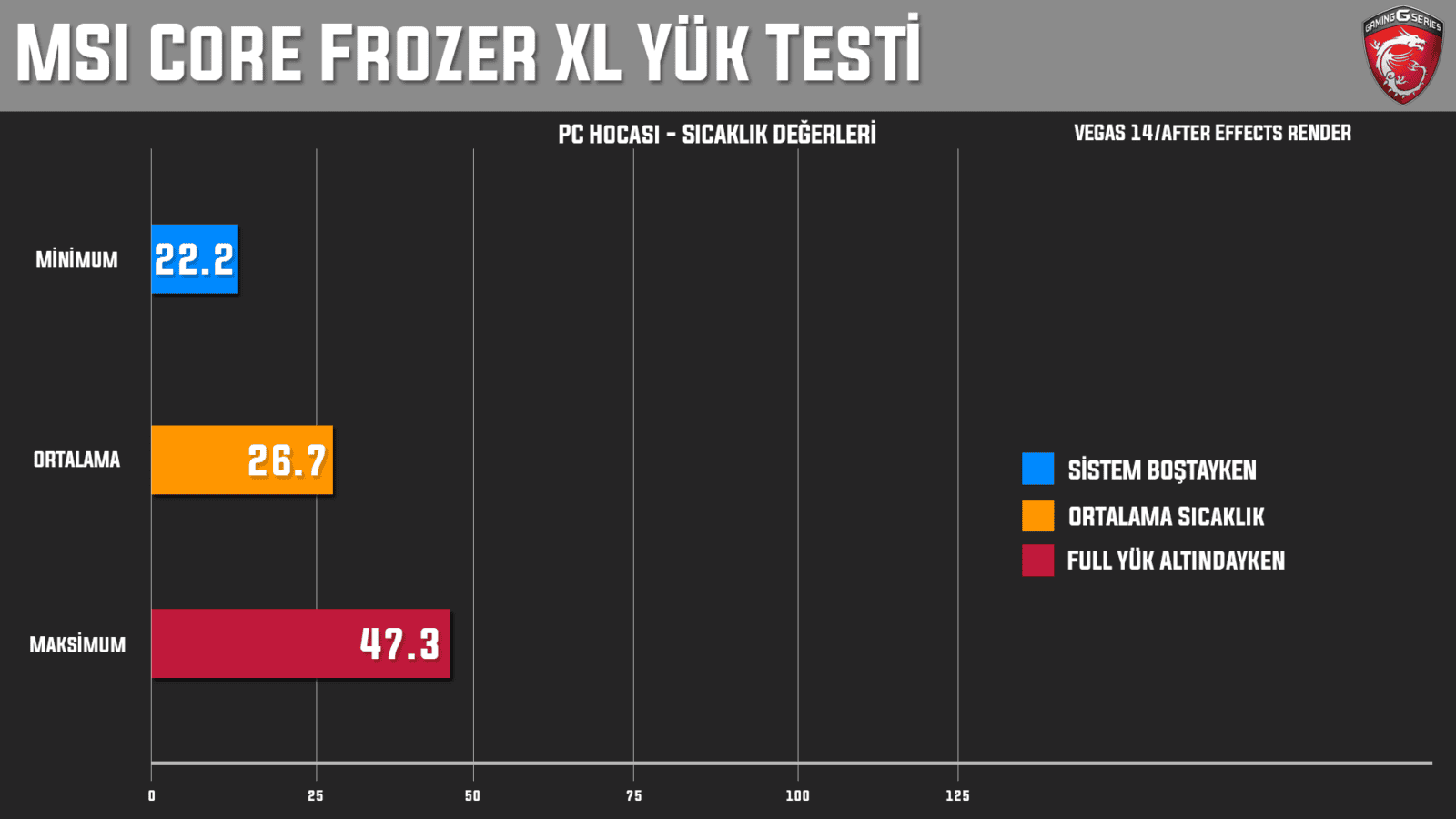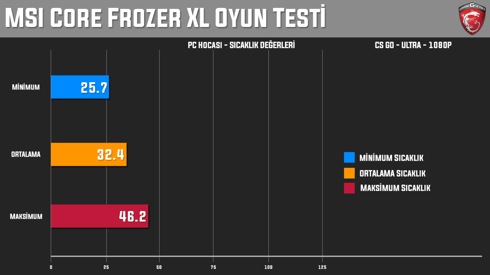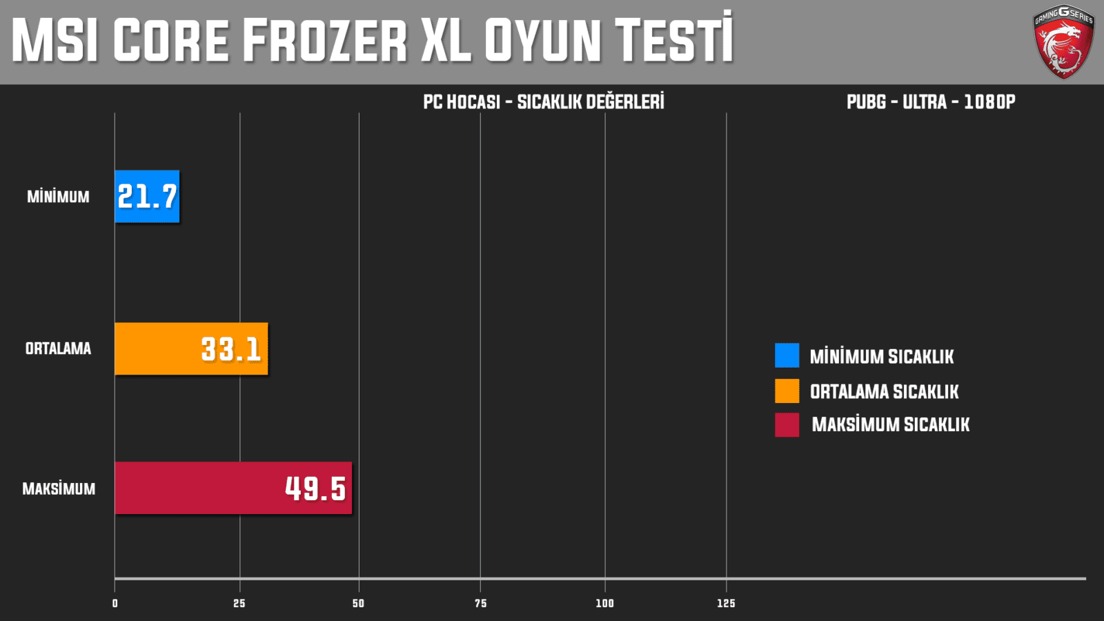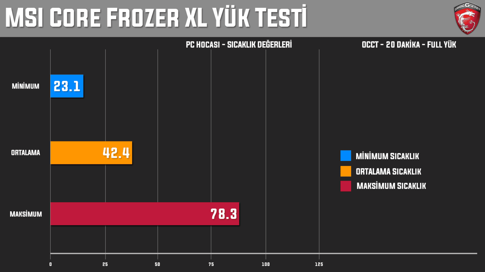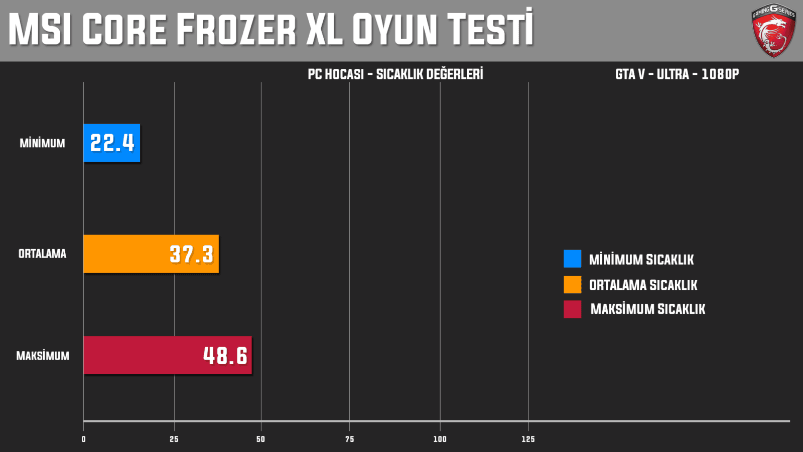 Gerek tasarımı gerek sunduğu performans bakımından MSI Core Frozr XL soğutucu, bizden tam not aldı diyebiliriz. Olumsuz anlamda gözümüze çarpan tek şey belirttiğimiz gibi soğutucunun büyük olması. Bunun haricinde Core Frozr XL birçok sıvı soğutmadan üstün iken üst seviye sıvı soğutmalarla da yarışacak düzeyde performans sunuyor.