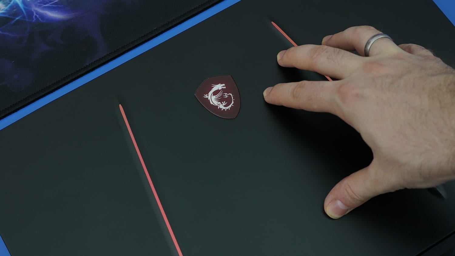 Kasa noktasında da yine metal malzeme kullanıldığını söylemiştik. Bu alanda RGB aydınlatmaya sahip düşük profil klavye dikkat çekiyor. Üstelik MSI, klavyeye nümerik tuş takımı eklemeyi de ihmal etmemiş. Hemen alt bölümde ise touch padi görüyoruz. Touch padin etrafında da yine arka kapakta gördüğümüz kırmızı şerit mevcut. Bu alanın etrafını saran şeritler, arka kapak tasarımını da bu şekilde desteklemiş.