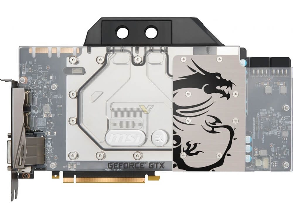 EK tarafından tasarlanan su bloğu, ön tarafta MSI ejderhası ve GeForce GTX logolarına yer vererek gerçekten şık bir tasarıma imza atmış. LED aydınlatma olup olmadığı konusunda henüz net bir bilgi yok ama MSI'ı tanıyorsak, aydınlatma olmadan iş yapmayacaktır. Öte yandan nikel kaplama tabla GPU'su bellek ve güç bölümünü komple kaplayarak stabil bir görüntü oluşturuyor.