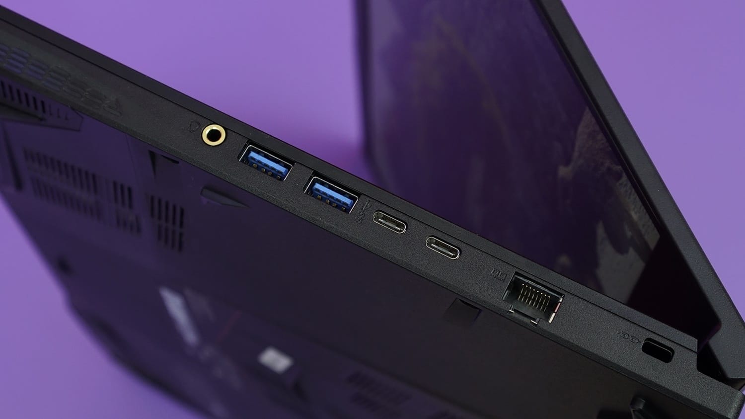 MSI GF65 Thin'in kasa etrafına bakacak olursak yeterli sayılabilecek bağlantı noktaları gözlemliyoruz. Sol bölümde sadece güç giriş ve HDMI yuvası bulunurken, sağ kısımda iki adet yüksek hızlı USB ve iki adet Type-C yuvası ile 3.5 mm kulaklık giriş ve LAN portu yer alıyor. DVD yuvasının olmamasına alıştık ancak SD kart okuyucunun kalkması, içerik üreticiler için problem olabilir. SD kart okuyucu artık yok. Arka kısımda herhangi bir bağlantı yuvası mevcut değil ancak bu alanda iki adet havalandırma ızgarası bulunmakta. Sol bölümde de bir havalandırma ızgarası olduğunu da ekleyelim.