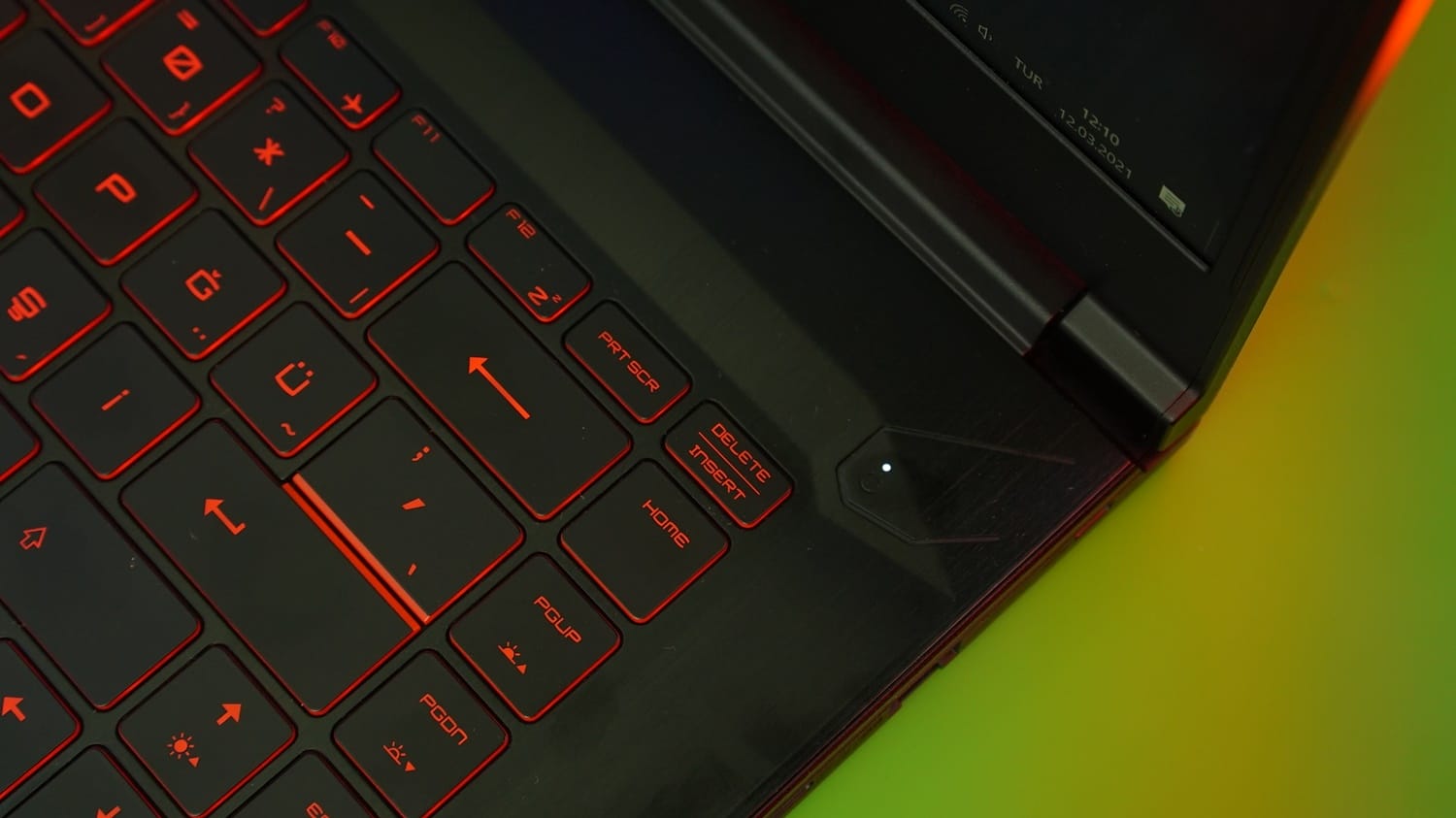 İç tasarımda mekanik olmayan çiklet klavye tuşlarını görüyoruz. Tamamen Türkçe klavye ile gelen cihaz, nümerik tuş takımına sahip değil. Aydınlatma olarak sadece kırmızı renge sahip olan tuşlar, düşük profilli yapıları ile kullanım tarafında son derece rahat bir deneyim sunuyor.