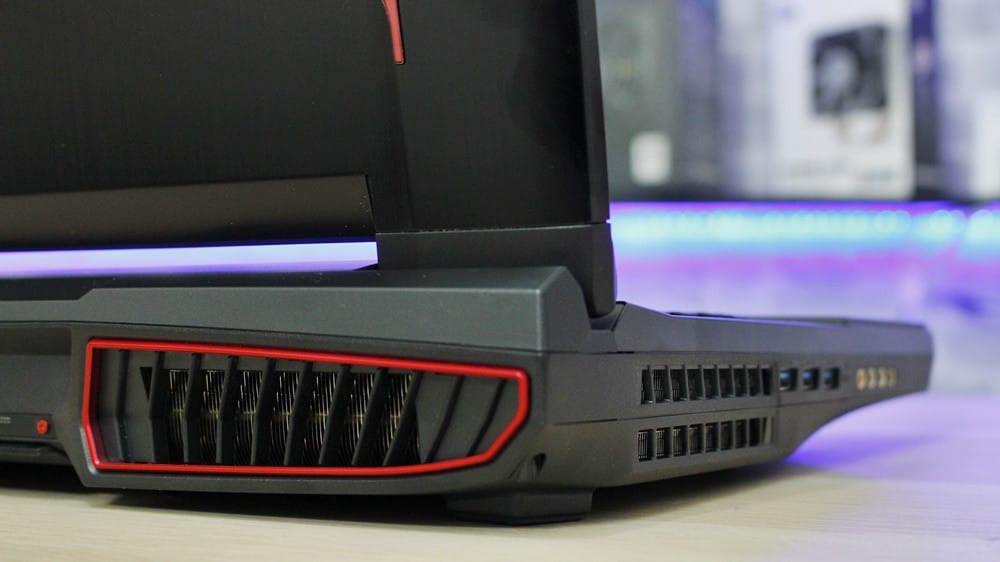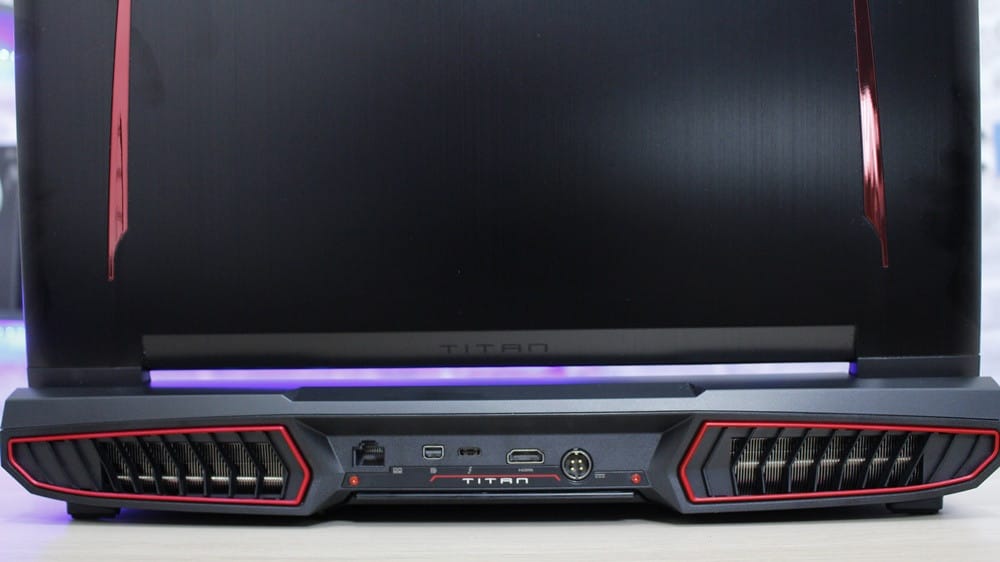 Soğutma tarafında oldukça güçlü gördüğümüz laptop 9 soğutma borusuna ek sağ ve sol kenarlarında havalandırma kanalları bulunduruyor. Bu kanalların eşlik ettiği egzoz fanları ise laptopun arkasındaki iki kenarda olacak şekilde konumlandırılmış. Tüm hava çıkışının bu kanallardan sağlandığını gördüğümüz MSI GT75 Titan 8RG, bu tasarım ile spor araba tarzı bir hava yakalamış. Aynı zamanda laptopun altında bulunan keskin ızgaralar da bu tasarımı destekler nitelikte. Izgaraların büyük olanı da yine tasarım rengi kırmızıya boyanmış.