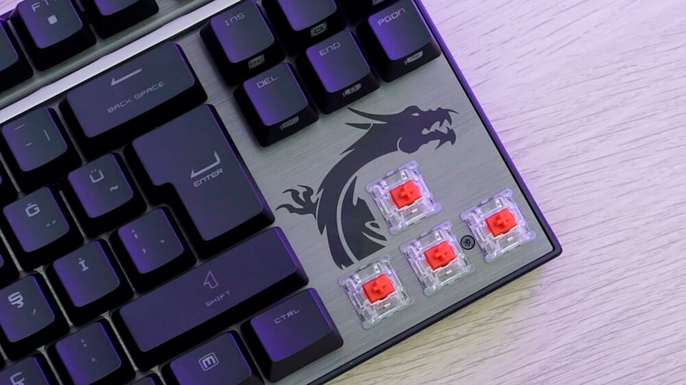 Yön tuşlarının hemen üzerinde konumlandırılan MSI ejderhası, klavyenin oyuncu ruhunu iyi şekilde yansıtan bir detay durumunda. Klavyenin her iki kenarında da yine ejderha ve çizgisel süslemeler bulunuyor.