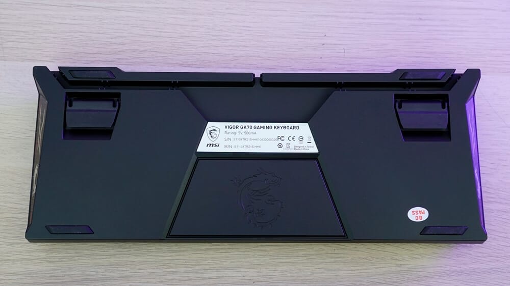 Son olarak MSI Vigor GK70'in 900 gram ağırlığa sahip olduğunu aktaralım. Bu ağırlık, kullanım esnasında klavyenin konumunu kaybetmemesi için yeterli düzeyde. Üstelik tabanda klavyeyi biraz daha yükseltebileceğiniz kaymaz, açılı ayaklar bulunuyor.