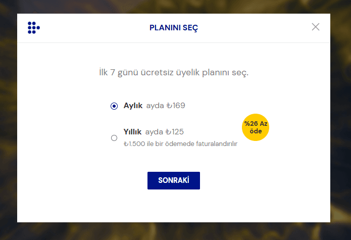 İlk 7 gün ücretsiz deneme sunan platformun bireysel abonelik fiyatları bu şekilde: