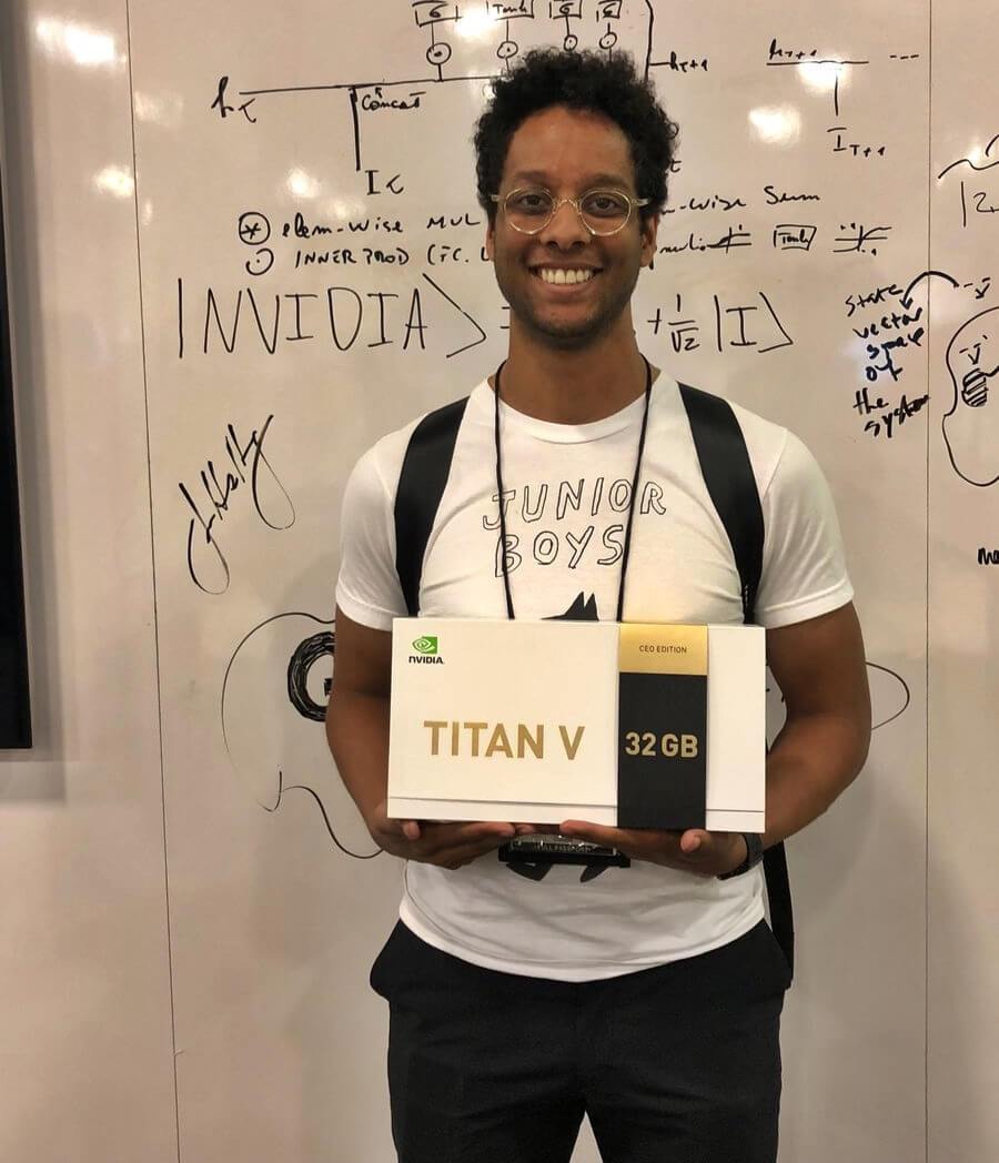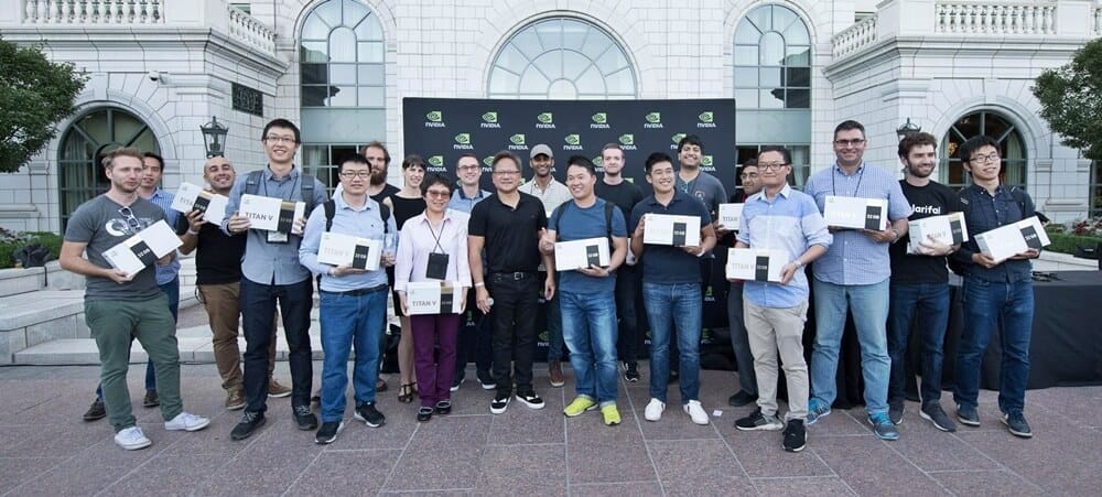 NVIDIA CEO'su Jensen Huang, şirket içerisinde yirmi rastgele seçilmiş AI araştırmacısına Çarşamba gün özel baskı serisi olan TITAN V CEO Edition ekran kartı hediye etti. Yeni TITAN V çalışanlara verildikten sonra, mevcut modelden 20 GB Daha fazla olduğu öğrenildi.