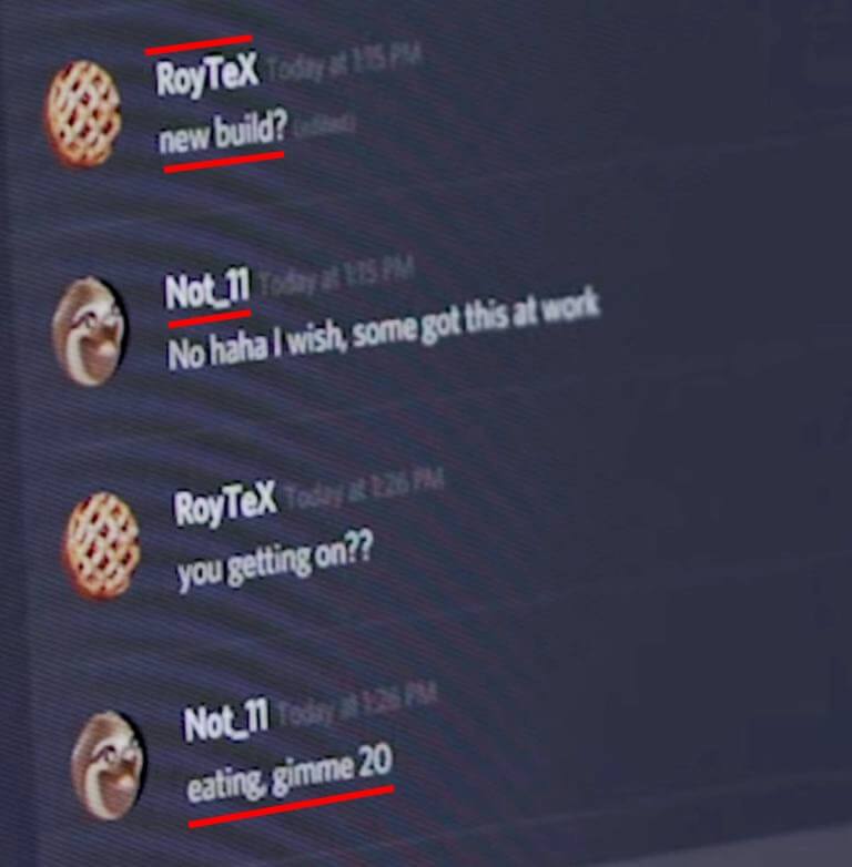 Ayrıca etkinlik karelerinde yer alan sohbet konuşmalarında ise açıkça isim RoyTex = RTX, not_11 ve gimme 20 olarak nitelendiriliyor. Bu saatten sonra ise yeni ekran kartı serilerinin NVIDIA RTX olarak geleceğine kesin gözü ile bakabiliriz.