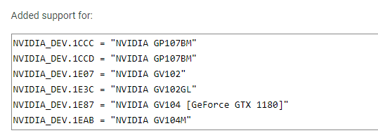 NVIDIA_DEV.1E87 = “NVIDIA GV104 [GeForce GTX 1180]”