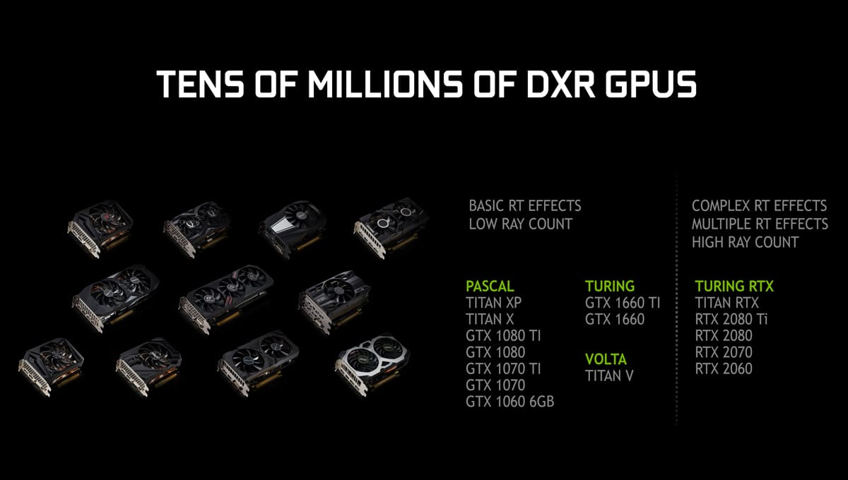 Diğer tarafta NVIDIA, henüz yeni tanıttığı RT çekirdeği içermeyen Turing mimarili GTX 1660 ve GTX 1660 Ti modellerine de DXR desteği sunacak.