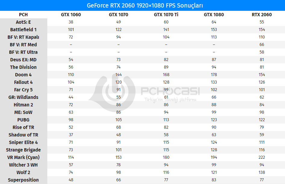 NVIDIA RTX 2060 FPS Test Sonuçları