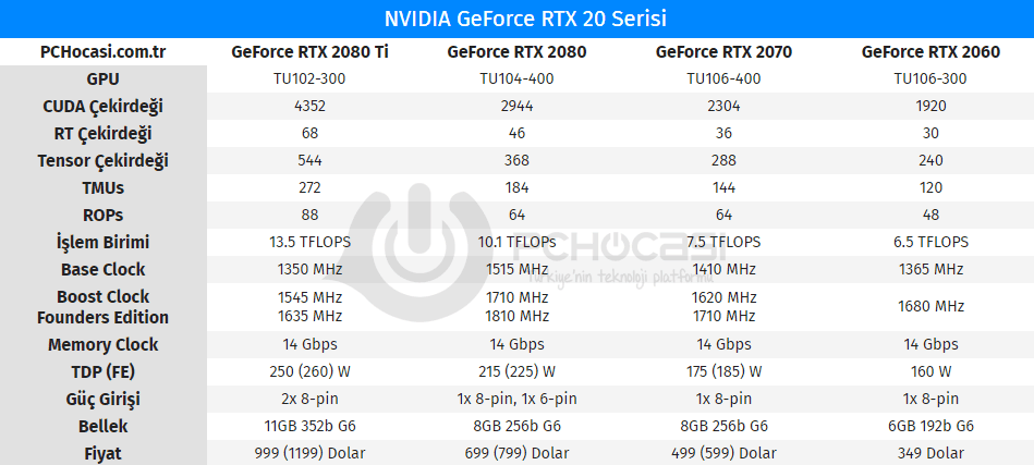 Kart piyasaya 1920 adet CUDA çekirdeği, 240 Tensor çekirdeği, 30 RT çekirdeği, 48 ROP ve 120 TMU işlem birimi ile gelecek. 1680 MHz Boost Clock hızı ise referans kartlarda aynı bırakılacak. Mimari tarafında ise Pascal mimarisinden devam ettiği konusunda iddialar mevcut. İlerleyen günlerde daha net bilgiler edinmiş olacağız.