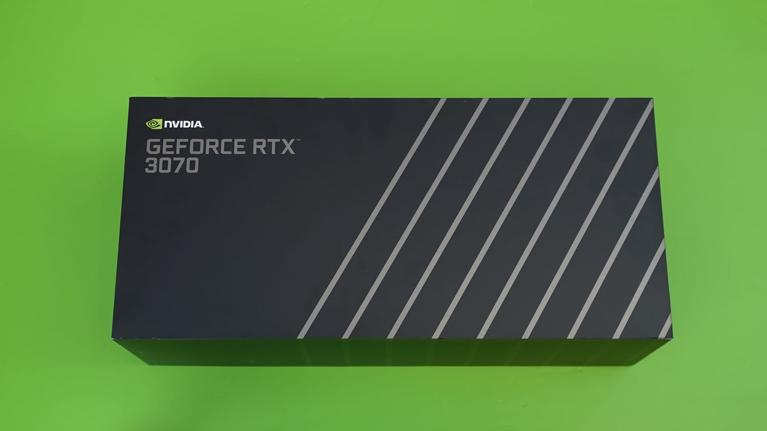 NVIDIA RTX 3070 ekran kartını masamıza koyduğumuzda son derece şık ancak dikkat çeken bir tasarım ile karşılaşıyoruz. Kutu üzerinde NVIDIA logosu ve kartın model adı bulunuyor ve birkaç noktada gri şeritler göze çarpıyor. Kutu rengi tamamen mat siyahtan oluşuyor. Son derece asil duran kutu esasen içerik tarafında heyecan uyandırıyor.