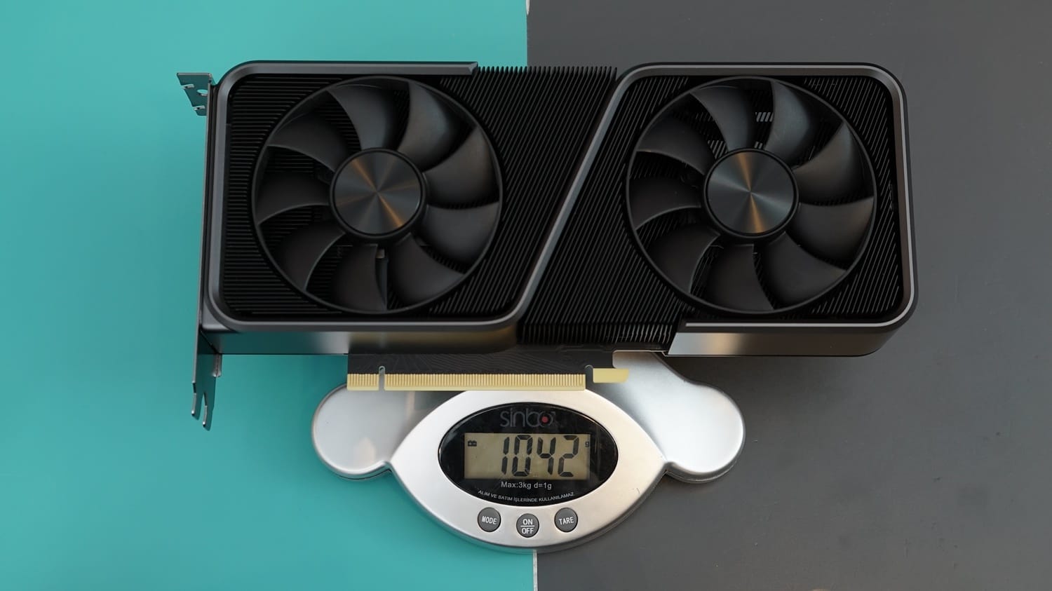 NVIDIA, yeni ekran kartında alüminyum ve metalbileşenler kullanmış. Bu malzemeler başta da söylediğimiz gibi hem tasarım hem de soğutma alanında karta olumlu yorumlar katmış. Ağırlık tarafında 1 kilogramın üzerinde olan kart, ne çok hafif ne de çok ağır bir yapıya sahip. Kartın ölçülerinde de ciddi iyileştirmeler mevcut. İyileştirmeden kastımız 3080 modeline göre çok daha ufak bir yapı görüyoruz. Kart, 24 cm uzunluk 10.4 cm genişlik ile birlikte kasa içine daha rahat sığar bir yapıya sahip. 3080 modelinde kasadan üç yuva kaldırmamız gerekirken RTX 3070 ile iki bağlantı yuvasını kaldırmamız yeterli oluyor.