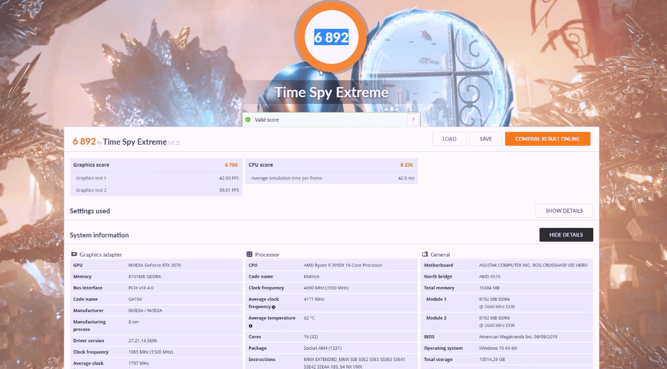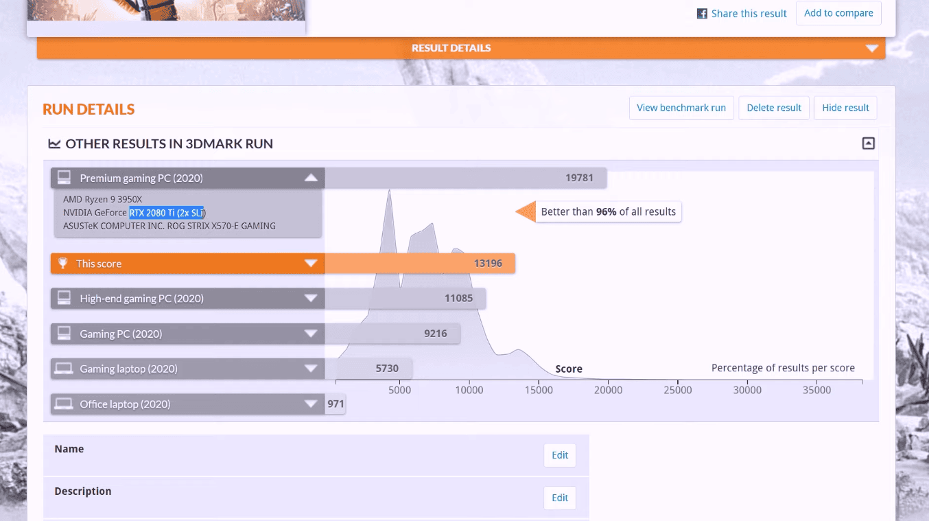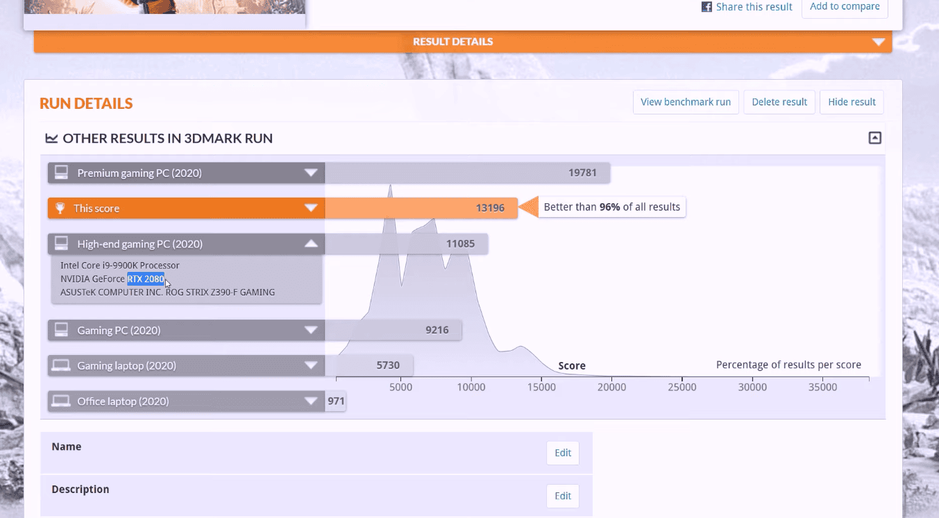 Testin performans sıralamasına baktığımızda ise RTX 3070'den üstte olan ve 19781 puan alan çift SLI kurulumlu NVIDIA RTX 2080Ti ekran kartı görünüyor. Bir alt sıraya baktığımızda ise 11085 puan alan NVIDIA RTX 2080 modeli bulunuyor.