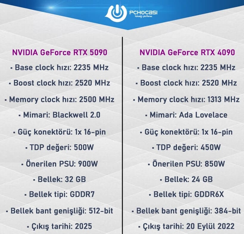 RTX 5090 vs RTX 4090 Özellik Karşılaştırması