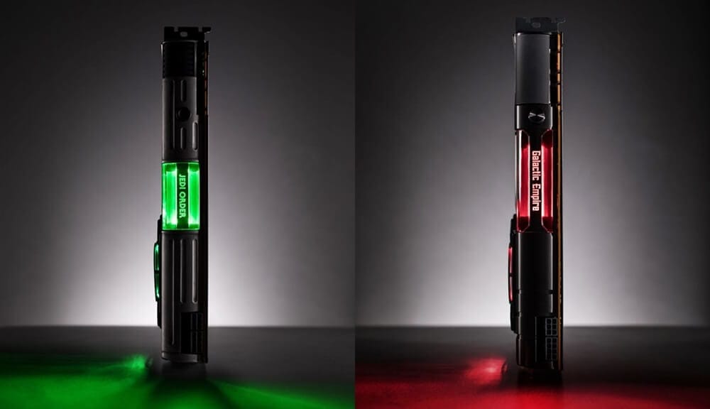 Galaktik İmparatorluğunun renklerini temsil eden kırmızı modelin yanı sıra, gözümüzün Jedi'lerin yeşil modelinde kalmasına neden oldu. Her iki kartta yarı şeffaf camlar ile kaplanarak, birinci sınıf ambalajları ile gönderiliyor.