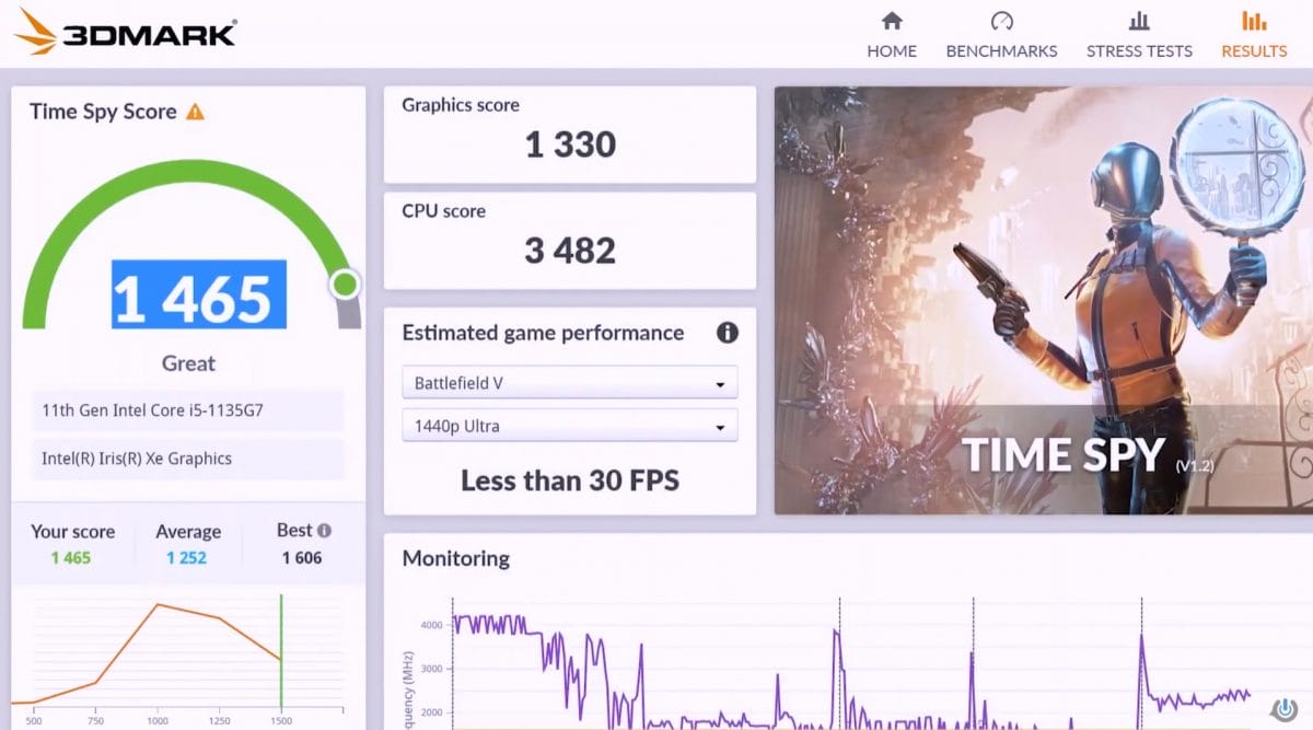 Genel sonuçlarda 1465 puan alan ASUS Zenbook 13 UX325, grafik skoru kısmında 1330 puan alıyor. İşlemci skoru kısmında ise 3482 puan almakta.