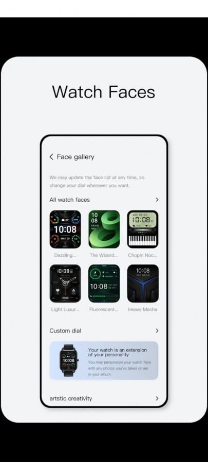 Mevzubahis ekran görüntüleri bizlere akıllı saatin altı farklı saat kadranını da gösteriyor ve akıllı saatinizin ekran kadranına bağladığınız cihazınızın galerisindeki fotoğrafları da uyarlamak mümkün olacak.