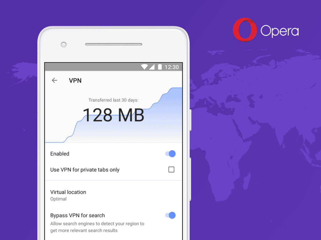 Opera tarayıcısı Android versiyonu için bugün ücretsiz VPN özelliğini test ettiğini duyurdu. Tamamen ücretsiz ve sınırsız kotası bulunan bu VPN özelliği, Asya, Avrupa ve Amerika olmak üzere üç farklı konum seçeneği ile bağlanma imkanı sunacak.