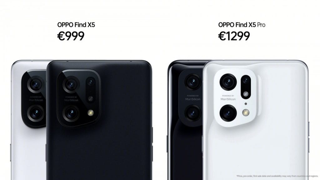 Pro modelindeki benzer, ekstra büyük bir çok katmanlı buharlı soğutma sistemine sahip ve herhangi bir şekilde toza ve suya dayanıklı değil. Sabit bir 5G bağlantısı için 360 derece antene sahip olan Oppo Find X5, 8GB RAM / 256GB Depolama Alanı yapılandırması ile birlikte (Avrupa'da yalnızca bu yapılandırma sunulacak) 1.000 Euro fiyat etiketiyle ön sipariş için şu anda mevcut. Normal satışlar ise 14 Mart'ta başlayacak.