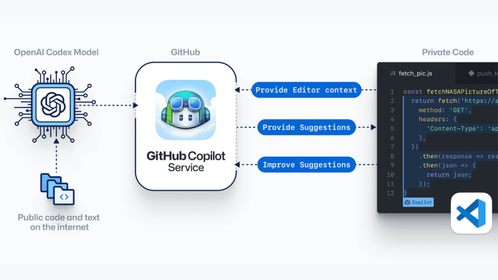 GitHub Copilot, Microsoft'un Visual Studio Code programında çalışan ve mevcut projelerde kodlama sürecine yardımcı olmak için tasarlanan yeni bir yapay zeka tabanlı yardım asistanı. GitHub Copilot, çeşitli programlama dilleri ve çerçevelerini destekliyor ve IDE içinde tüm satırlar veya tüm fonksiyonlar için öneriler sunarak geliştiricilerin hayatlarını kolaylaştırmayı hedefliyor. Proje OpenAI Codex tarafından destekleniyor ve milyarlarca satır açık kaynak kodu üzerinde eğitiliyor.
