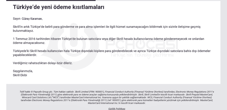 Bilgi için teşekkürler PC Hocasi, ama bize mail gelmedi. Alternatif olarak açtığım bir hesaptı? İyice dalga konusu ettiler. Alternatif varmı başka skrill gibi acaba?