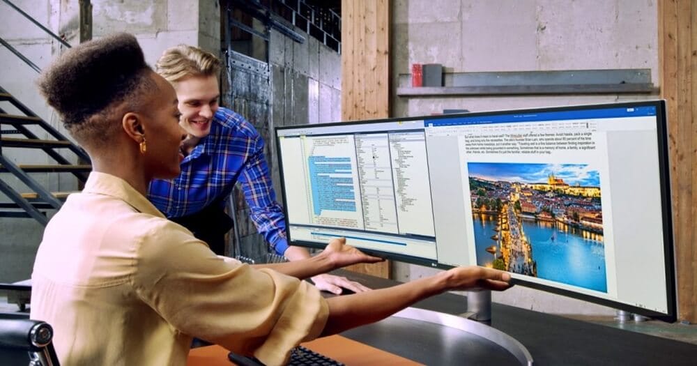 Artık arada kalan sinir bozan boşluğu ve dağınık kabloları ile karmaşık çoklu ekranlı kurulumlara duyulan gereksinim geçmişte kaldı. Onun yerine, 499P9H modeli, tıpkı 27 inçlik iki adet 16:9 Quad HD ekranın yan yana yerleştirilmesi gibi, 49 inçlik, göz alıcı bir çalışma alanı sunuyor.