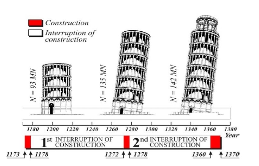 Pisa Kulesi’nin inşaatı 1173’te başladı. 3. kat yapılırken kule bir tarafa eğilmeye başladı. Neden mi? Çünkü zemini çorak bir tarla gibi yumuşak ve heterojen: kil, kum ve deniz kabukları karışımı. Yani altı sağlam değil, neredeyse hamur kıvamında.