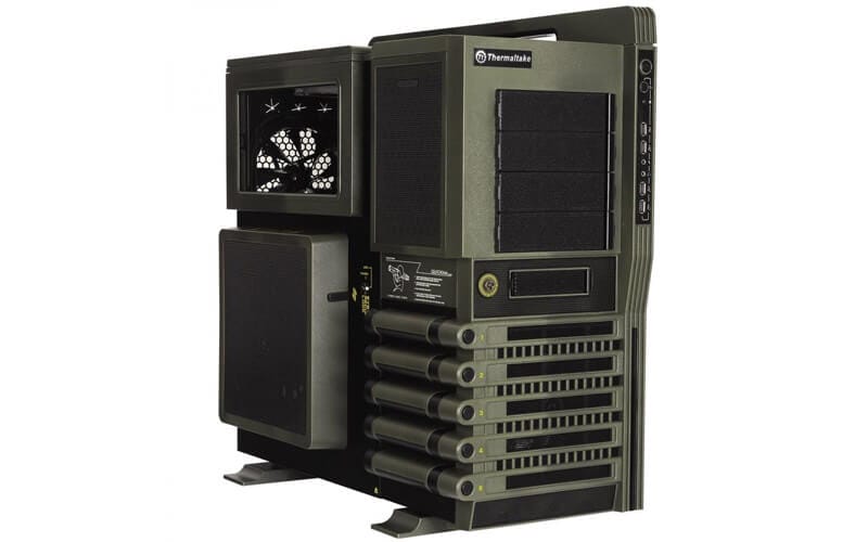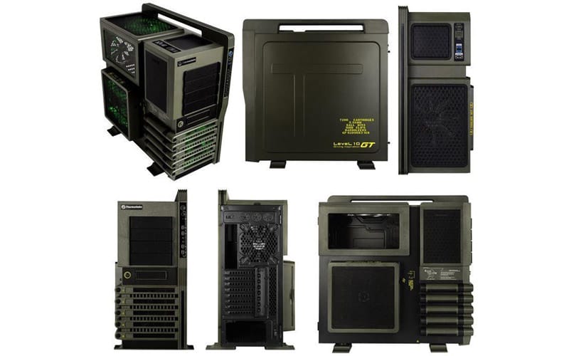 ThermalTake'in bir başka pahalı modeli ise Level 10 GT Battle Edition Gaming. ThermalTake bu modelinde savaş konseptini son derece başarılı bir şekilde yansıtmış. Eğer Call of Duty, BattleField gibi oyunların müptelası iseniz bu kasa tam size göre. Üzerine 10 adet sürücüyü bağlayabilmenize olanak sağlayan Level 10 GT, 8 adet genişleme yuvasınıda beraberinde getiriyor.