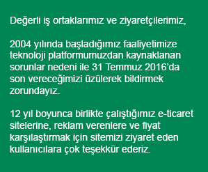 Resmi olarak Bilio.com web sitesinede açıklama yapılarak "Değerli iş ortaklarımız ve ziyaretçilerimiz, 2004 yılında başlamış olduğumuz faaliyetlerimize teknoloji platformumuzdan kaynaklanan nedenlere bağlı olarak 31 Temmuz 2016 tarihinde son vereceğimizi üzülerek bildirmek zorundayız. 12 yıl boyunca birlikte çalıştığımız e-ticaret sitelerine, reklam verenlere ve fiyat karşılaştırmaları yapmak için sitemizi ziyaret eden kullanıcılara teşekkür ederiz." denildi.