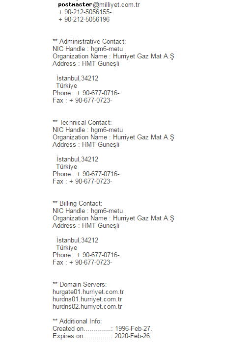 Whois: Radikal web sitesinin hali hazırda aktif olarak devam eden 10 yıllık bir geçmişi bulunuyor. Whois bilgilerine ulaştığımızda Doğan Medya grubunun iletişim bilgilerini görüntüleyebilirsiniz. Yani bu demek oluyor ki, Radikal'in web sitesine günlük ortalama 60 haber giriliyor. Bunu bir yıla vuracak olursak 21 bin 900 haber eder. On yılda ise milyonlarca indeks, etiket ve haber anlamına gelir.