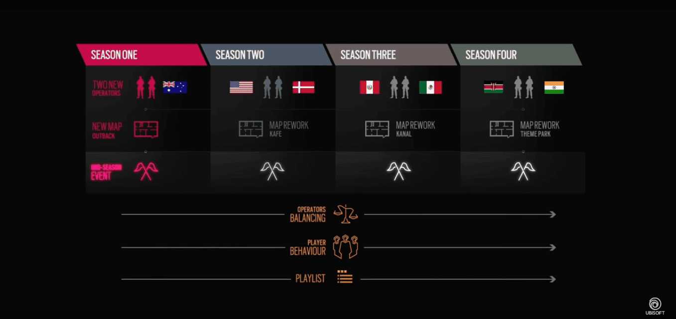 Ubisoft'un Montreal stüdyosu tarafından geliştirilen birinci şahış nişancı türündeki Tom Clancy's Rainbow Six: Siege, 1 Aralık 2015 tarihinde piyasaya sürülmüştü. 4. yılına giriş yapan oyunun ilk sezonuna dair bilgiler geçtiğimiz hafta ortaya çıkmıştı.