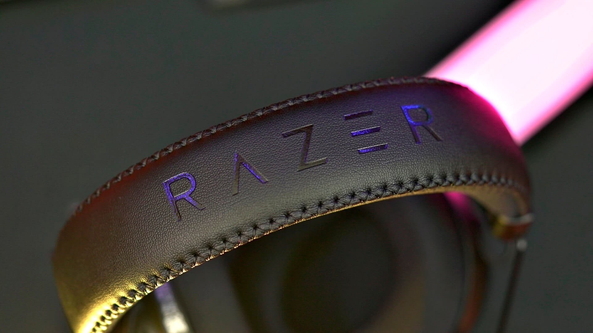 Kafa bandının üst kısmında yine Razer yazısını görüyoruz. Deri olan bu kısmın alt bölümünde ise kumaş kullanılmış. Kullanılan kumaş malzemenin hava alıyor olması ve yumuşak bir malzeme olması, uzun kullanımlarda da başınızın rahat etmesini sağlıyor.